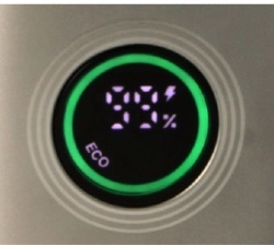 Un petit écran couleur en forme de hublot indique le niveau de charge en pourcentage ainsi que les 3 modes de puissance :
