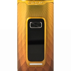 An easy-to-read 0.96" colour screen is located in the centre of the box. It displays: power in watts, battery level in percentage, coil value in ohms, puff duration in seconds and a puff counter.